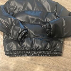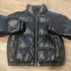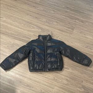 Stay cozy and stylish with this Art Class black puffer jacket, featuring a high collar for added warmth and a sleek quilted design. Made from durable synthetic materials, this jacket offers a shiny, puffy appearance perfect for chilly weather. Its waist-length fit and full-length sleeves ensure comfort and protection against the elements.