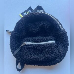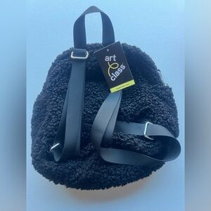 Stylish black backpack with textured design. Features durable straps and secure buckle.