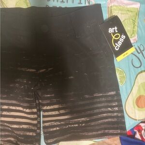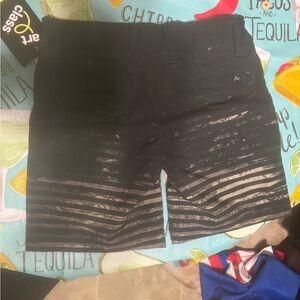 Trendy swim trunks with a black base and tan pattern. Ideal for summer outings.#beach