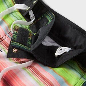 These Striped Swim Trunks from art class are perfect for beach and pool activities. Made with 100% recycled polyester, they offer comfortable wear. The adjustable waistband ensures a secure fit with a hook-and-loop fastener. With UPF 50+ protection, they keep your child safe from the sun, and the back pocket is convenient for carrying small essentials. Featuring a multicolored stripe design, they can be paired with various rash guards or tanks for versatile swimwear.