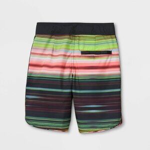 Art Class Boys' Striped Swim Trunks Green 10 Husky
