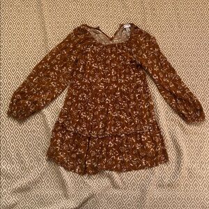 Charming brown dress with floral pattern. Long sleeves. Perfect for any occasion.