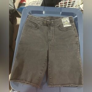 Casual charcoal denim shorts. Features drawstring waist. Ideal for everyday wear. #summer