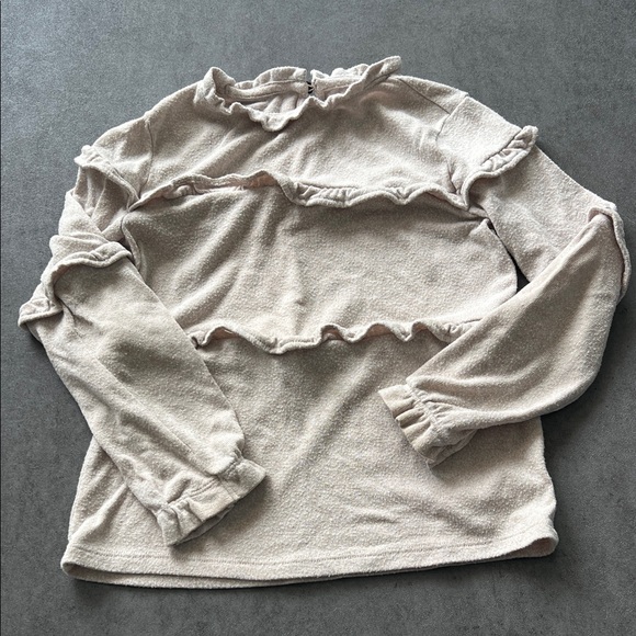Chic cream blouse with playful ruffles. Soft and stylish design.
