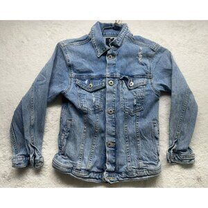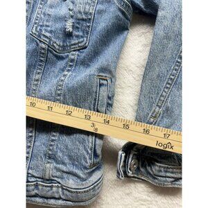 Art Class Denim Jacket sz 7/8 Blue Distressed Button Up w/Pockets Western/Boho- Great condition with no visual flaws