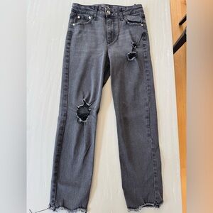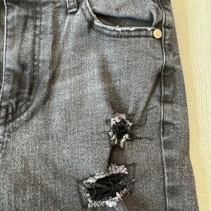 Trendy distressed jeans for kids. Features a stylish black color. Ideal for everyday wear.