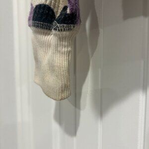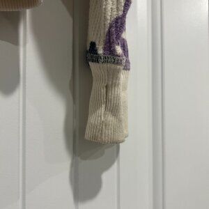 - Colors = beige top with purple, black and green flowers
