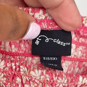 Art Class Girl’s Light Red Floral Smocked Puff Short Sleeve Top Small 6/6X