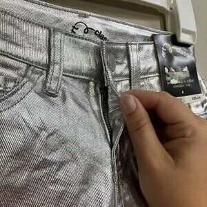 Art Class Girls' Silver High-Rise Baggy Metallic Denim Jeans Pants Button Fly
