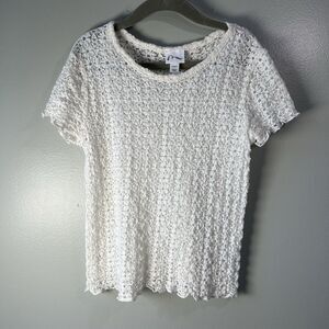Art Class Girls White Shortsleeve open knit stretch Shirt, size S (6/7)