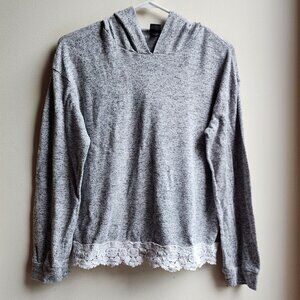 Art Class Juniors Gray Lace Hooded Pullover Sweater Size XL (14/16). Fuzzy and soft. Excellent condition.