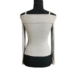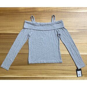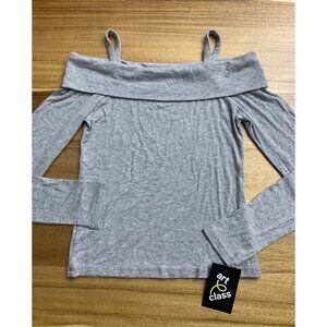 Art Class Juniors Off-The-Shoulder Grey Long Sleeve Ribbed Top With Straps Large