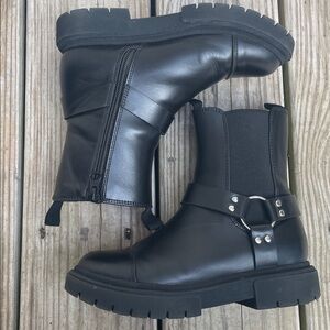 Art Class KIDS Crosby Harness Moto/Biker Boots Black Faux Leather Size 1