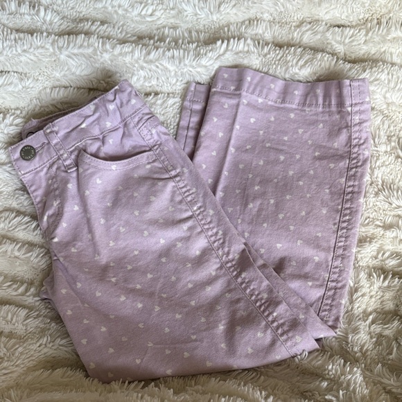 Charming lavender jeans with heart pattern. Perfect for everyday style.