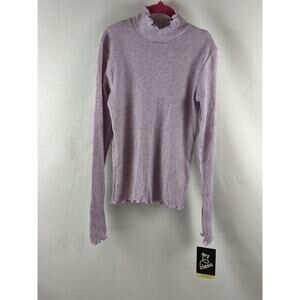 Art Class Lettuce Edge Mock Neck Top Light Purple M Ribbed Long Sleeves Sweater