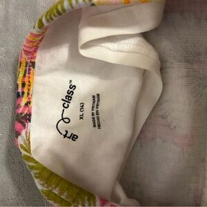 Colorful garment with a mix of pink, yellow, and green patterns. Soft and stylish.