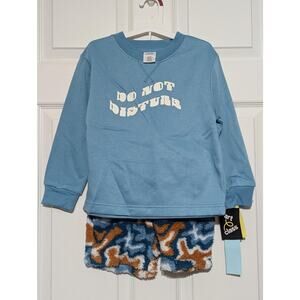 Art Class Pajama Set Youth XS 4/5 Blue Long Sleeve Do Not Disturb Fuzzy Shorts
