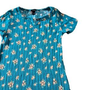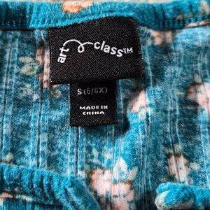 Art Class Ribbed Floral Girl dress S6/6x. Teal. 13" pit to pit laid flat. 25" total length. EUC. 3oz