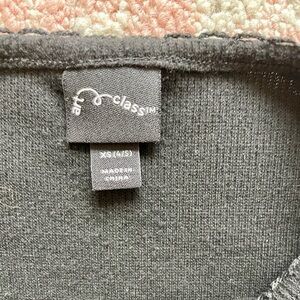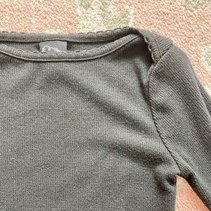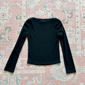 Art Class black long sleeve ribbed shirt with scalloped detail at collar. Cute comfy basic to go with any outfit!