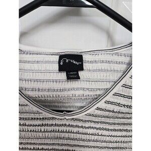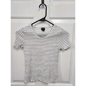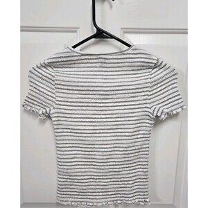 Art Class Smocked Top Girls L 10/12 Short Sleeve V-Neck White W Black