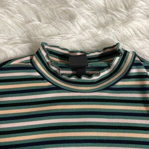 Art Class Top 90s Style Ribbed Texture Multicolor Stripes Short Sleeve Sz Large