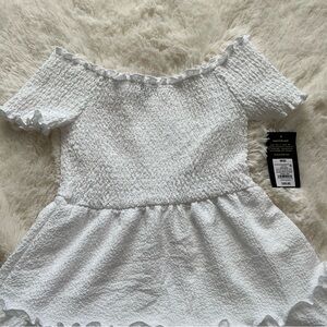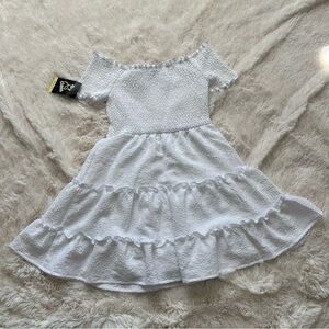Art Class White Off the Shoulder Short Sleeve Smocked Tiered Dress