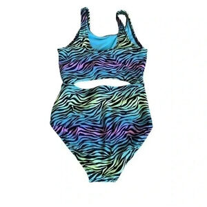 Art Class Zebra Multicolor One-Piece Girls Swimming Suit SZ L (10/12) # 1315