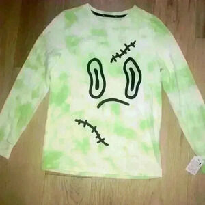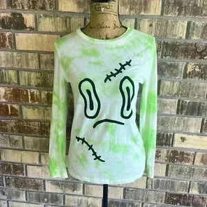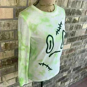 Size L (12-14) green and white tie dye long sleeve T-shirt.