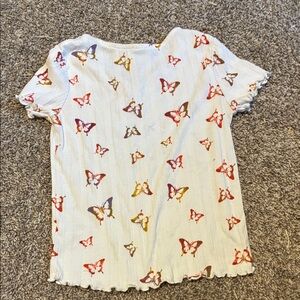 Charming kids' tops featuring a delightful butterfly and floral design. Perfect for adding a touch of whimsy to any outfit.