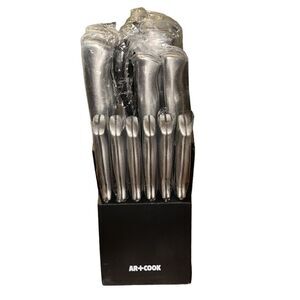 Description: From slicing meat, fish or poultry to chopping veggies, this Art & Cook 15-piece stainless steel knife block set has the tool you need for any task, plus a sleek wooden storage block to keep everything organized and within reach.