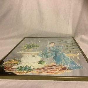 Art Deco 15” x 11” mirrored patio garden image circa 1920’s woman