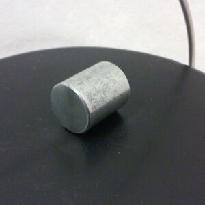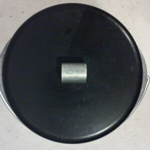 A Machine Age aluminum ice bucket with an Art Deco inspired cylindrical knob on the black lid. This cool ice bucket design is as great today as when it was produced and is in great vintage condition showing light signs of wear and light spots of oxidation. No makers mark. 10.5"H to top of handle/8.24"H to top of knob/7 .25"H to top of lid.