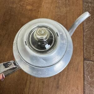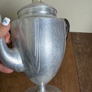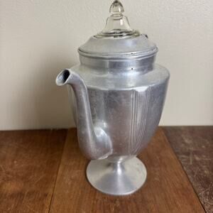 Art Deco Aluminum Pedestal Percolator Glass knob and wood handle