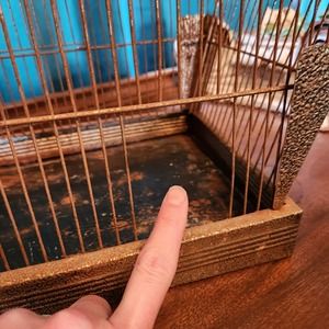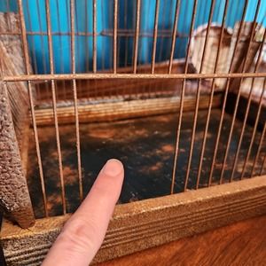 Missing the two food dishes, so this area has two holes. Would need a little tlc to be bird worthy, but definitely possible!