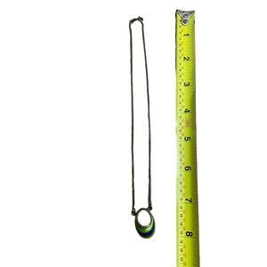 Art Deco Blue and Green Enamel Womens Necklace Sterling Dark Silver Vintage