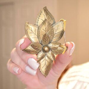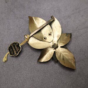 Art Deco Brass Fur Clips: Little Nemo Leaf Design, 1920s-30s