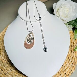 Lovely Art Deco Brushed Gold Tone and Glittery Swirled Crystal Teardrop Pendant on Silver tone chain, By Howard’s Collection.