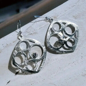 Art Deco Brushed Stainless Steel Geometric Cutout Austrian Crystal Earrings