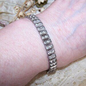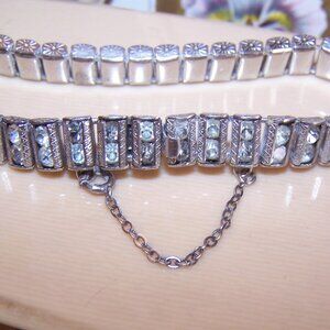 Art Deco Catamore Sterling Silver Rhinestone Line Bracelet - 7" Long