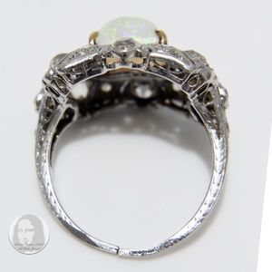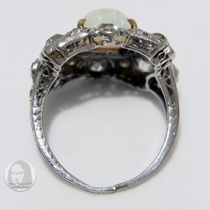 Art Deco Cocktail Ring Opal and Diamond Vintage Platinum Rare Early 20th C