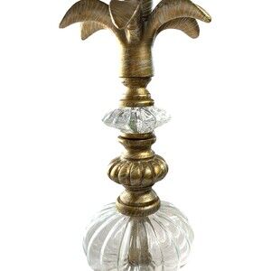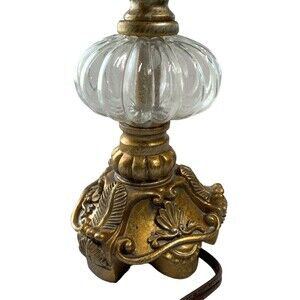 Art Deco Crystal Metal Ornate Lamp w/Red Brocade Shade Brass Base 22.5" VTG