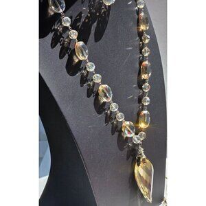 Art Deco Czech AB Crystal Bead Necklace & Earrings Set Flapper Statement