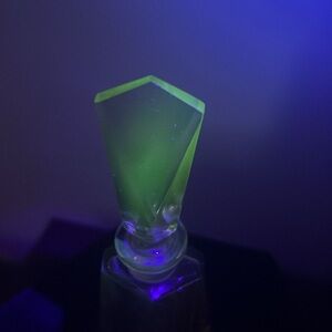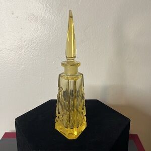 Art Deco Czechoslovakia Yellow Floral Vaseline Glowy Glass Perfume Bottle Dauber