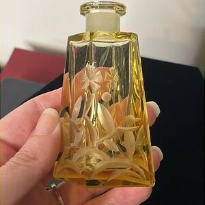 Art deco yellow floral vaseline glowy glass perfume bottle with dauber