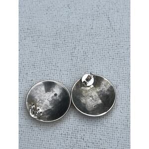 A pair of funky Art Deco earrings in 14k gold and Sterling Silver, featuring sparkling diamonds. These beauties are pre-loved but still in great shape, measuring only .75 inches across.