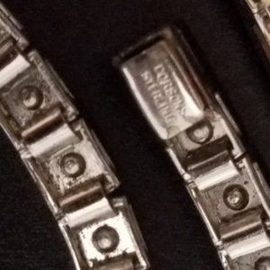 Simply fabulous art deco necklace and bracelet set from Dorsons Sterling. Exceptional craftsmanship using square paste rhinestones in fluid necklace and bracelet. Hidden push in clasp on both pieces. Necklace measures 14 1/2" and bracelet measures 6 3/4". Both pieces signed Dorsons Sterling.