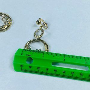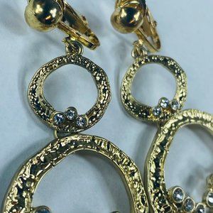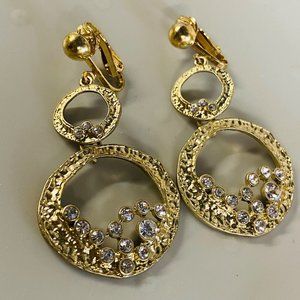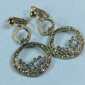 Art Deco Earrings Dangle Drop Clip-on Gold Tone Clear Rhinestones Gypsy Boho. Unbranded.