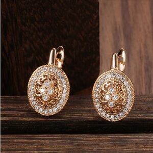 Art Deco Earrings Gold Plated Simulated diamonds New