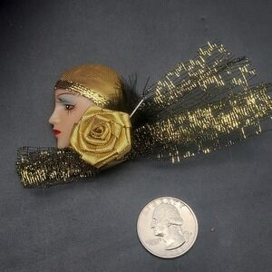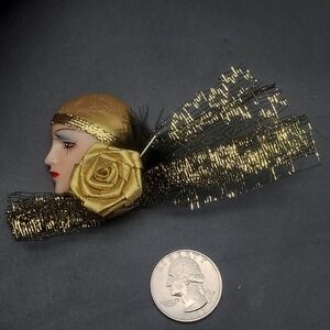 Art Deco Flapper Lady Face Head Brooch Artisan Handcrafted