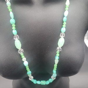 Appears to be a mixture of Acrylic/Lucite beads with Stone or Glass beads.